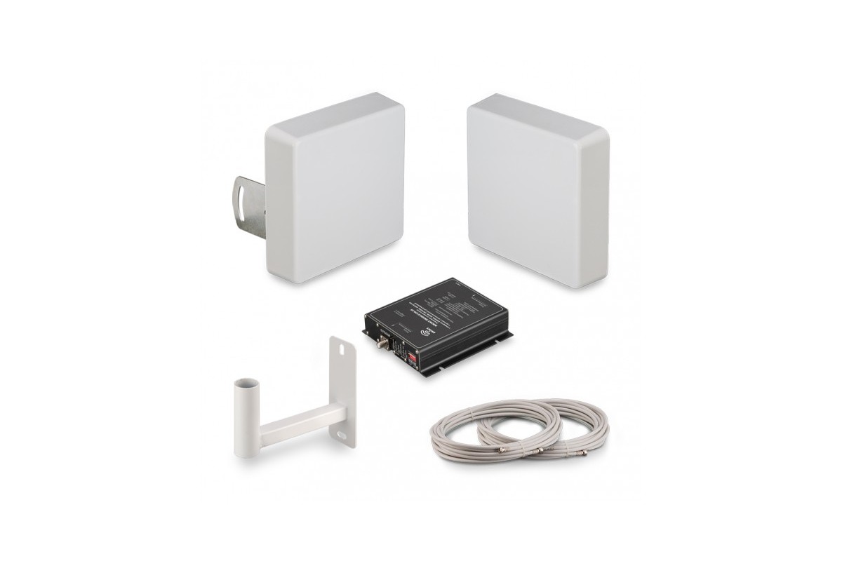 Данный комплект рекомендуется использовать в помещениях объектов, где сигнал плохой или отсутствует, а на улице приемлемый или хороший. Комплектуются внешней GSM антенной KP15-700/2900 с усилением 15дБ и внутренней настенной антенной KP7-900/2100 с усилением 7 дБ.