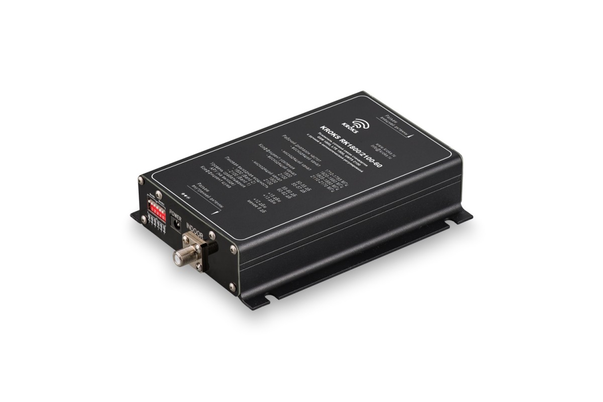 KROKS RK1800/2100-60 — репитер GSM-сигнала с коэффициентом усиления 60 дБ и максимальной выходной мощностью 13-15 дБм (20-32 мВт).