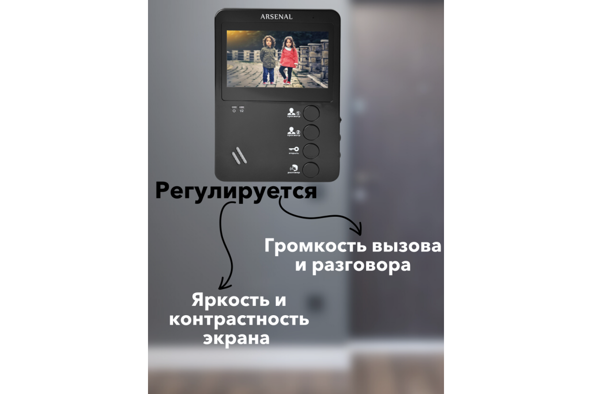 Arsenal Афина отлично подойдет для вашей квартиры или дома если вам нужен качественный бюджетный видеодомофон. При помощи домофона вы сможете увидеть, кто пришёл к вам в гости, открыть электрозамок на калитке, либо просто посмотреть, кто происходит перед вашей входной дверью или фасадом дома.