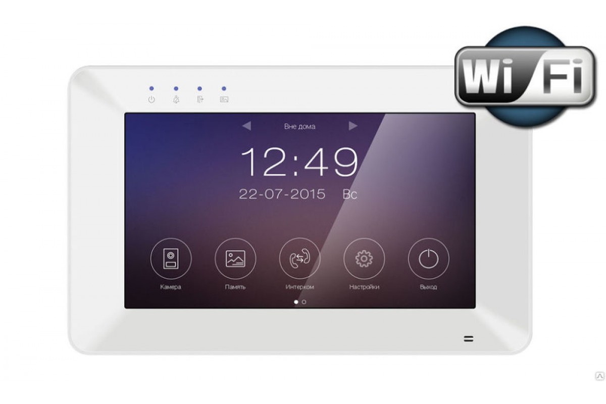 ИнструкцияДисплей TFT, цветной, сенсорный, 7 дюймов, 800х480 Управление Резистивный сенсорный экран Экранное меню Есть, с поддержкой русского языка Возможности подключения 2 вызывных панели, 2 камеры, до 4 мониторов в системе Частота Wi-Fi 2,4ГГц Антенна Wi-Fi Встроенная Тип подъездного домофона Нет Тип связи Без трубки Интерком Поддерживается Режим прослушивания других мониторов Нет Функция общего вызова Есть Режим <Не беспокоить> Есть Отображение календаря и времени на экране Нет Детектор движения для DVR Есть, 1 канал Запись фото Внутренняя память 100 фото или SD карта 1000 фото и 128 видеофайлов SD карта micro SD формата SDHC, до 32ГБ, класс не ниже 6-го Фоторамка Нет Автоответчик При установке SD карты Управление замком Через вызывную панель и управление воротами от монитора Переадресация вызовов на смартфон Да, до 4 пользователей Открывание замка со смартфона Да Способ монтажа Накладной Подключение 4 провода (4х0,5 кв.мм) Питание 100 - 240В, 50/60 Гц или 14,5В/0,8А пост. ток. Потребление Не более 12Вт, 5 Вт (ожидание) Рабочая температура От 0 до +40 град.С Рабочая влажность 0-95% Размеры 205х128х19мм
