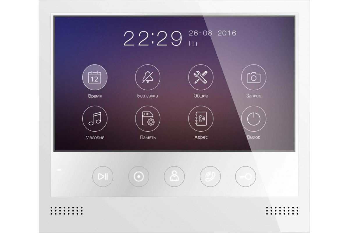 Монитор цветного видеодомофона 7 дюймов с сенсорными кнопками. Тонкий корпус 14мм со встроенным блоком питания.