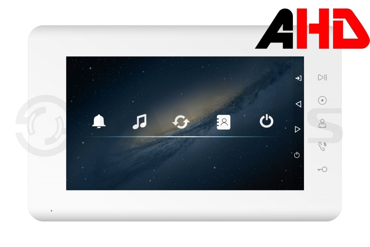 Монитор цветного видеодомофона 7 дюймов с сенсорными кнопками с поддержкой форматов AHD/TVI/CVI 1080p/720p, CVBS (PAL).
